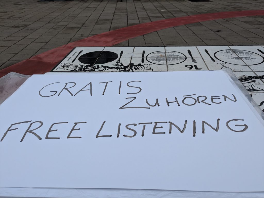 Unsere Vision war groß: In einer idealen Welt gäbe es nicht nur einen Stand, sondern wir würden die komplette Straße mit „Free Listening“-Stützpunkten überfluten. Wir wollen eine Welle der Empathie durch die Einkaufsstraße schicken.